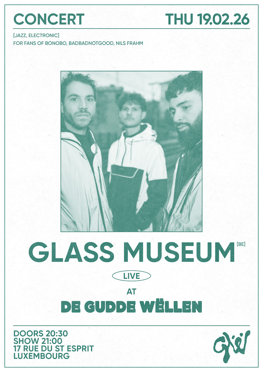 Since 2016, Glass Museum’s raw, sunny energy has been uniting the surgical precision of the best contemporary jazz, à la Gogo Penguin and Badbadnotgood, with the electronic influences of Jon Hopkins or Floating Points.