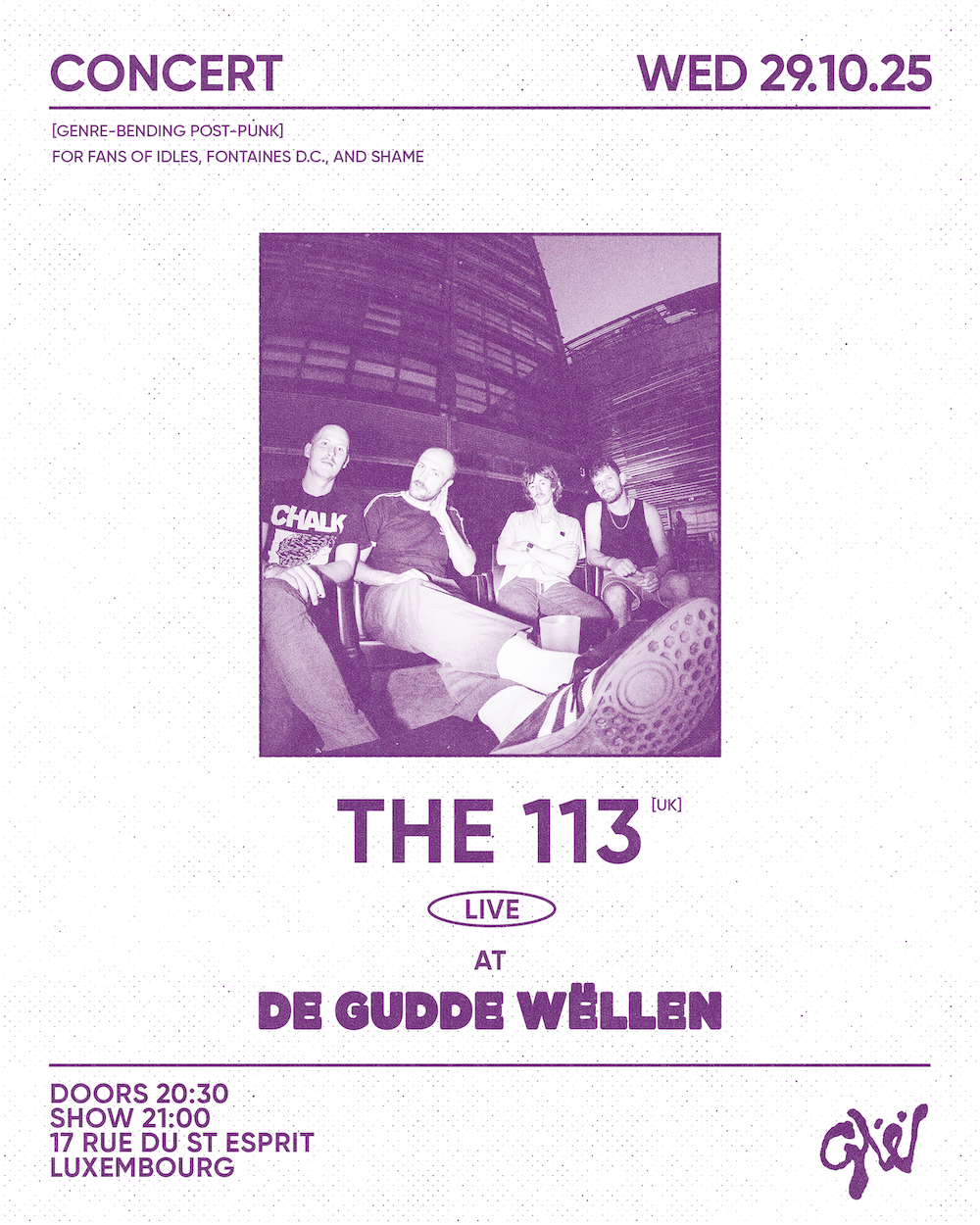 Crawling out of the cracks of Leeds' inner city, The 113 conveys a realistic and bleak outlook on everyday life, combining the style of Post Punk, Dance Punk and Noise Rock.